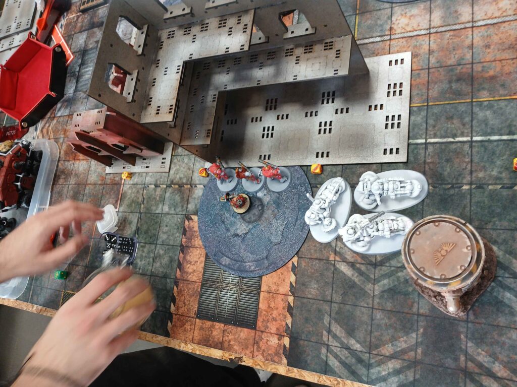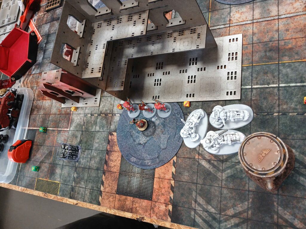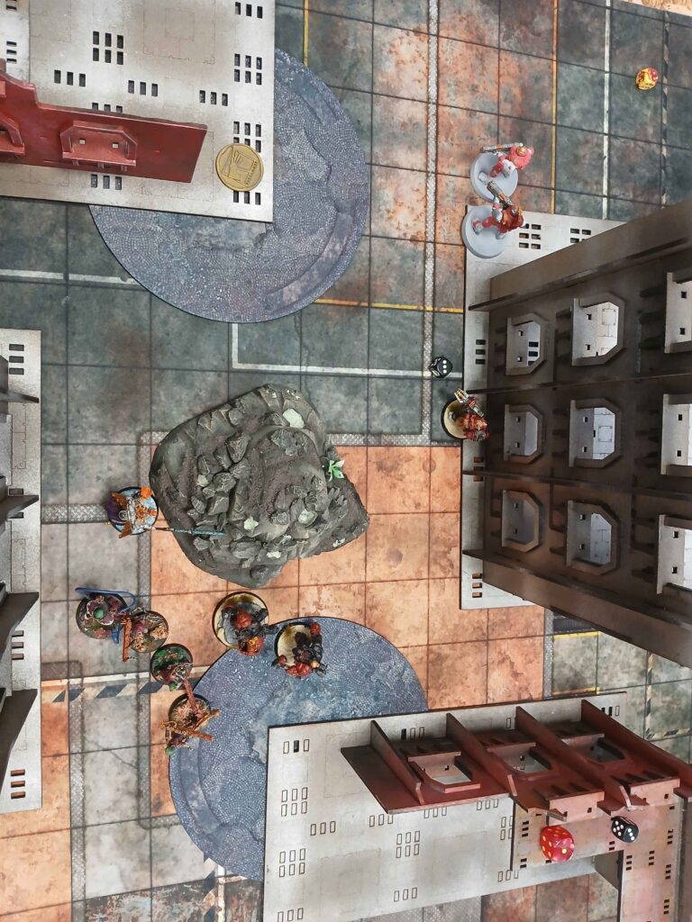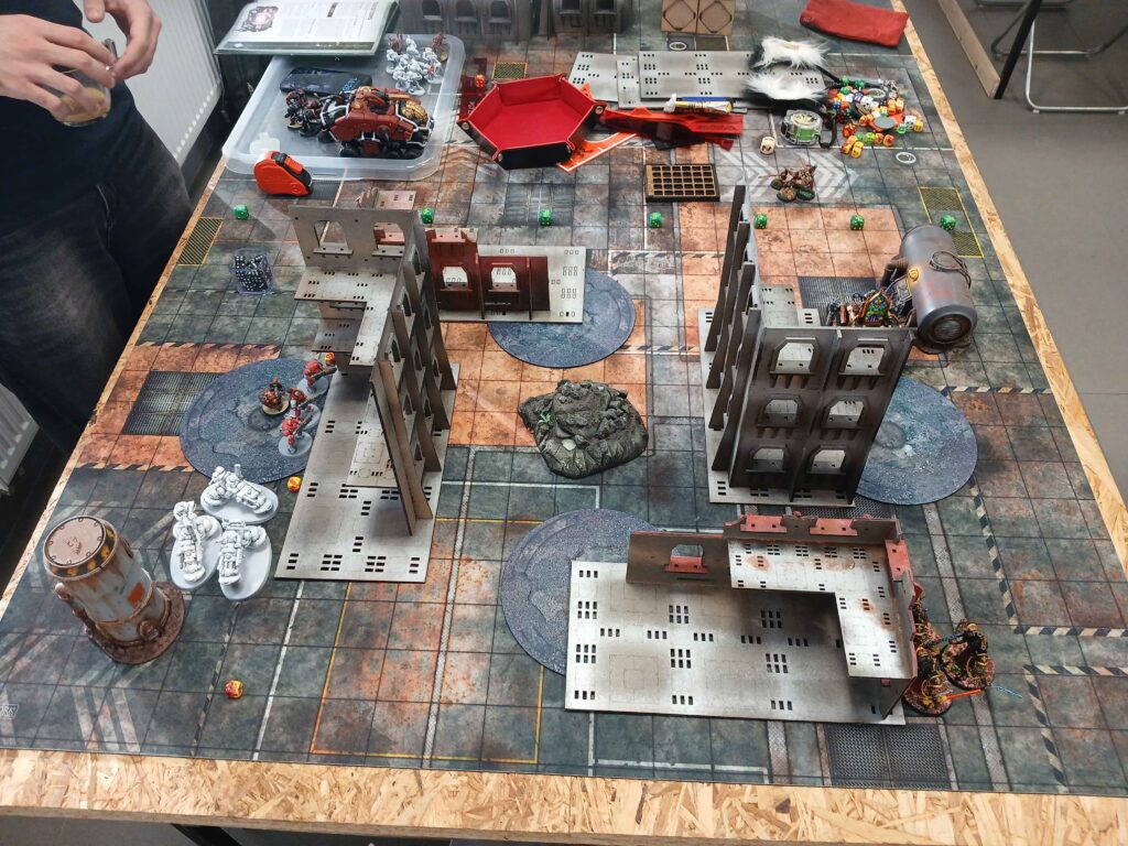 Nasledoval brutalni skirmish, kde warsuity utrpely drtivou ranu a byly poslany do opravy. To bylo urcite tim ze Miranda preferovala solo meditaci se svym warsuitem mimo bitvu. Alenya umrela, vzala trpasliky s sebou, ozivila se a potom jako kometa na 1 woundu proletela bojiste, skrz overwatch na ktery mohla umrit, a byla posledni model na stole.