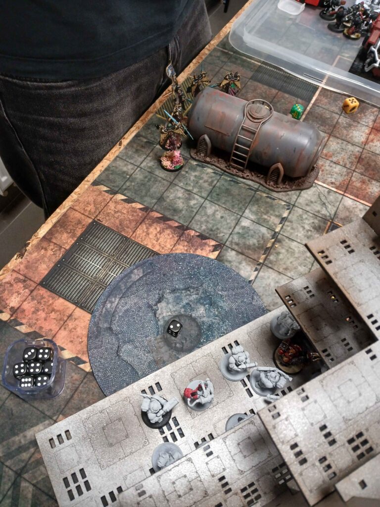 Alenya proste umrela, natavil ji kysely dest a trpaslici uz ji taky znali. Maji zcela pochopitelny grudge, a tak zustala weapon modifikace za ovladani shrine objectivu na konci hry pro 1 nahodneho flagellanta na shrine objectivu, ktery si ji nezaslouzil (Ale proc zahazovat free weapon upgrade) Potom co Warsuity utrpely drtivou ranu v minulem skirmishi uvolnily cestu pro Immolator Incendii a Dominion squadu Sigma. K Alenyi se pridaly Roztleskávačky ktere zabil kysely dest, immolator prisel o 4 woundy kvuli desti, flagellanti citili jen 1 bolest, a Alenya byla popalena na 1 wound. Ale na 1 woundu je presne to kde chce byt a nez ji trpaslici zabili tak stihla nemale mnozstvi vzit s sebou.